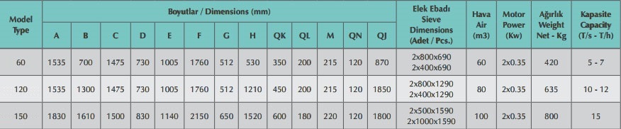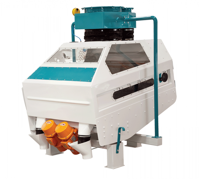 Taş ayırıcı; un, irmik ve hububat temizleme tesislerinde kullanılmaktadır. Kuru sistem temizleme ünitelerinin vazgeçilmez makinesidir. Buğday, arpa, mısır, pirinç, mercimek, nohut, fasulye, susam gibi taneli ürünlerin taşını hassas olarak ayırır. Taşı temizlenecek hububat elek üzerine kesintisiz olarak aktarır. Üst kısmında emilen hava ile hububat elek üzerinde yüzdürülür. Ağır parçalar elek üzerinde kalır. Eleğin harmonik hareketi ile bu ağır parçalar yüksek tarafa iletilir. Ön taraftaki tek çıkıştan taşlar, arkadaki çift çıkıştan da temizlenmiş hububat akar. Hava bu makinede sözü edilen yabancı materyallerin ayrıştırılmasında en önemli unsuru teşkil eder. Makinenin büyüklüğüne uygun olarak aspiratör seçimi ve ürünün cinsine göre de hava miktarı hava klapesinden ayarlanır.